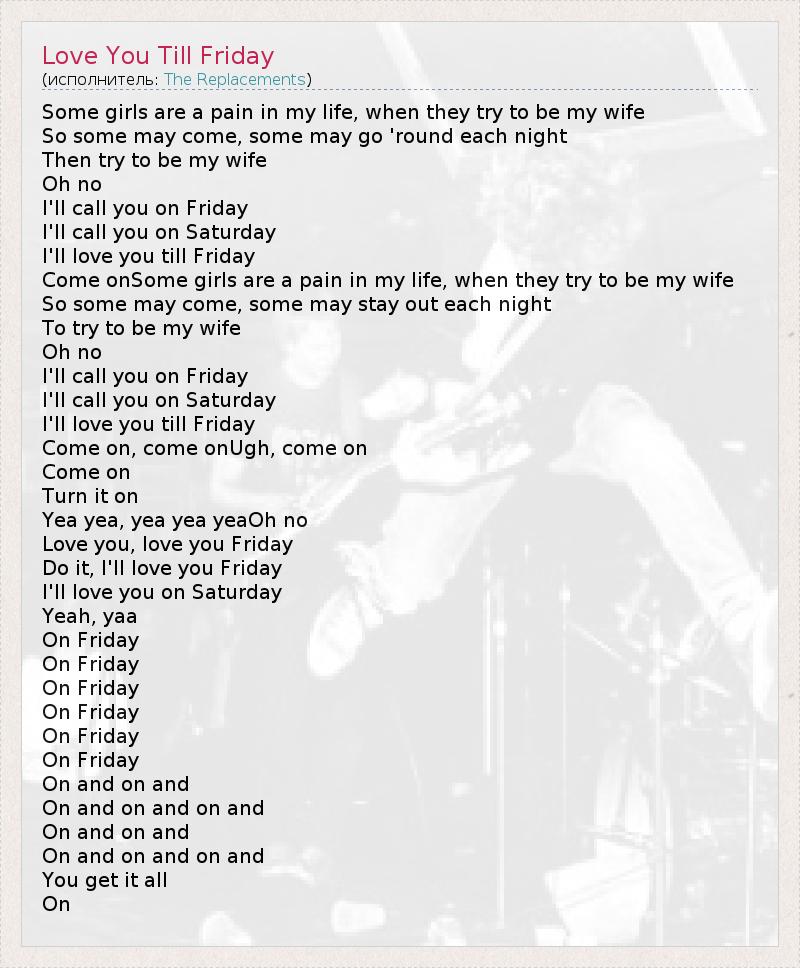 А как ты думаешь, о чем песня "Love You Till Friday" ?