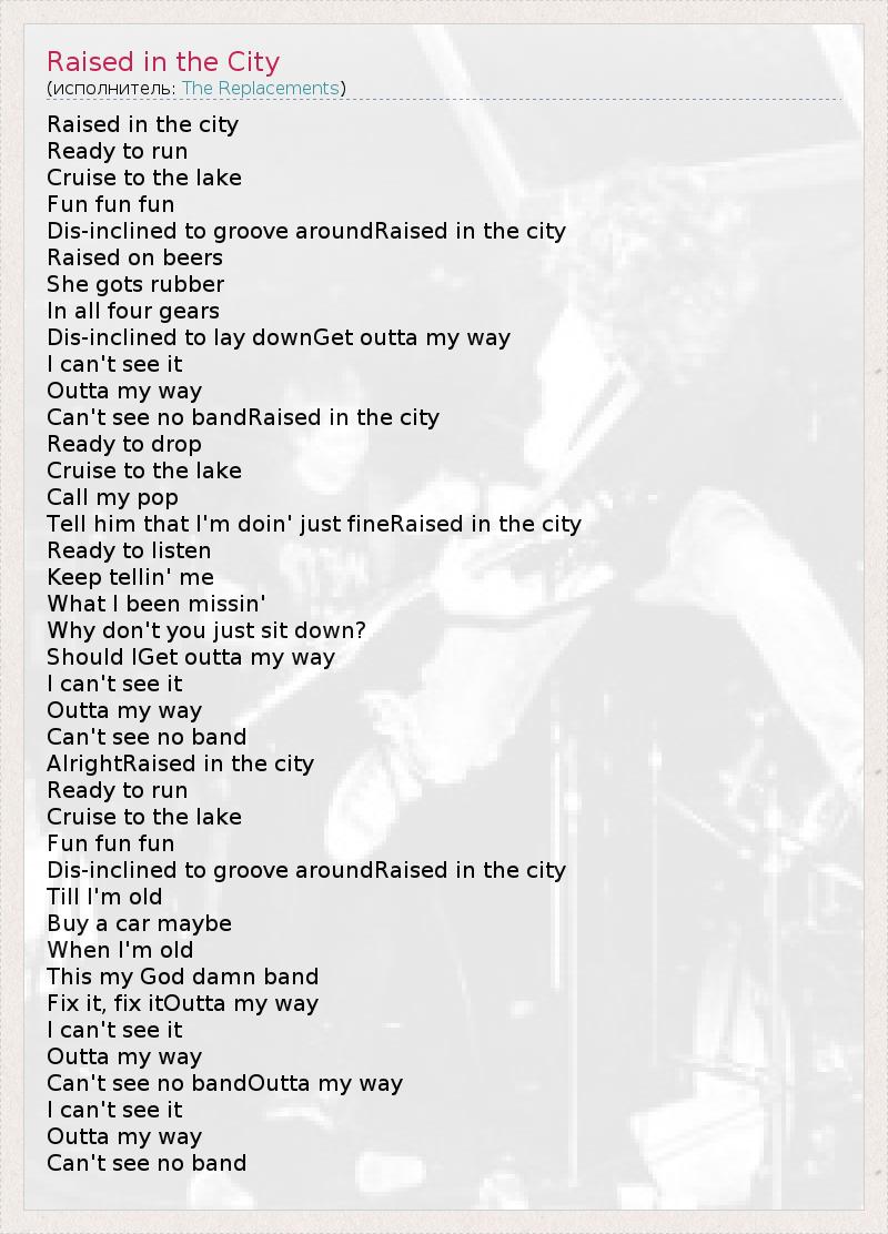 А как ты думаешь, о чем песня "Raised in the City" ?