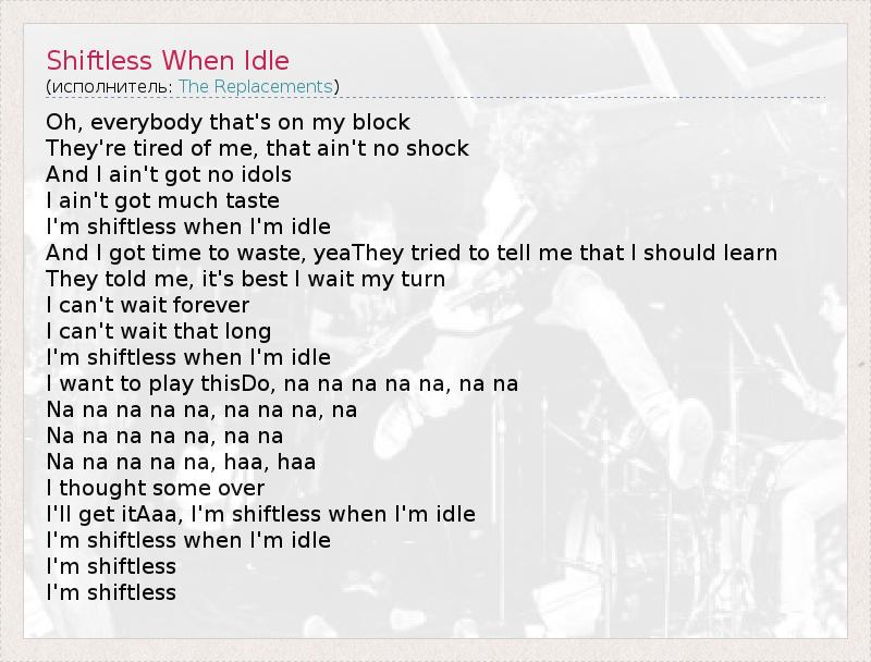 А как ты думаешь, о чем песня "Shiftless When Idle" ?