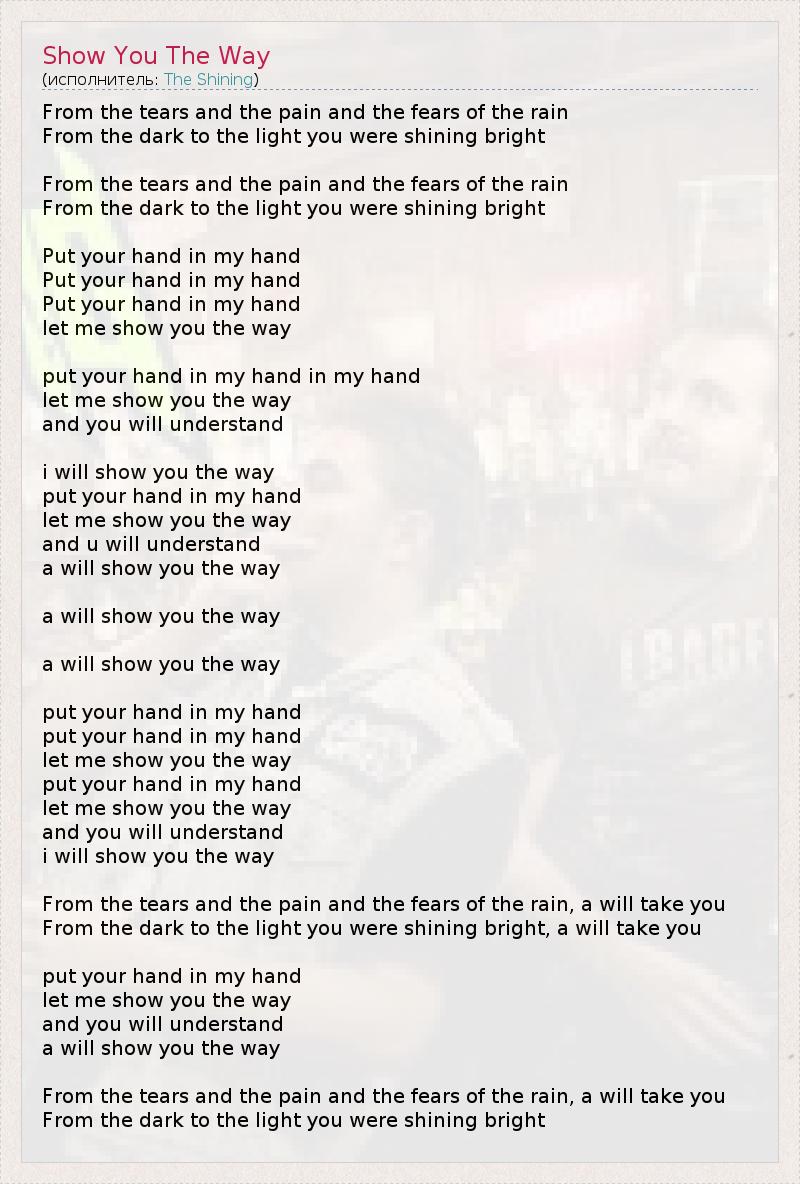 А как ты думаешь, о чем песня "Show You The Way" ?
