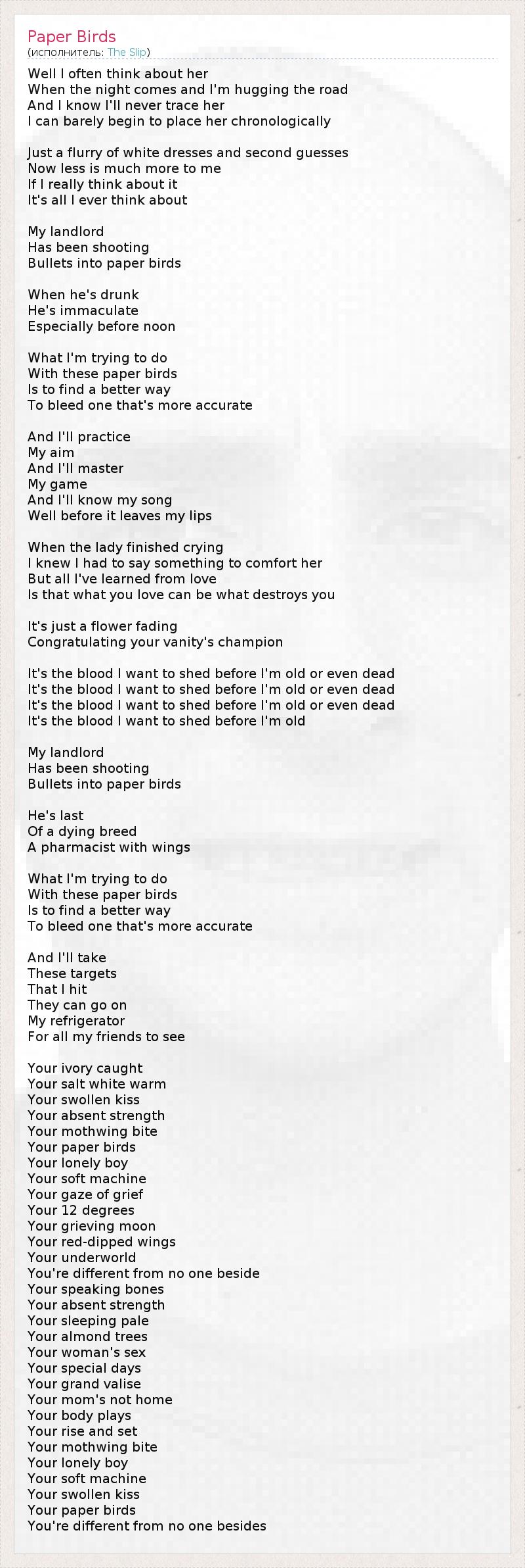 А как ты думаешь, о чем песня "Paper Birds" ?