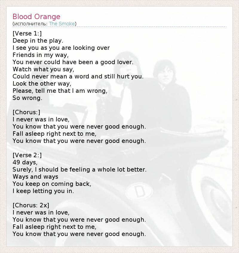 А как ты думаешь, о чем песня "Blood Orange" ?