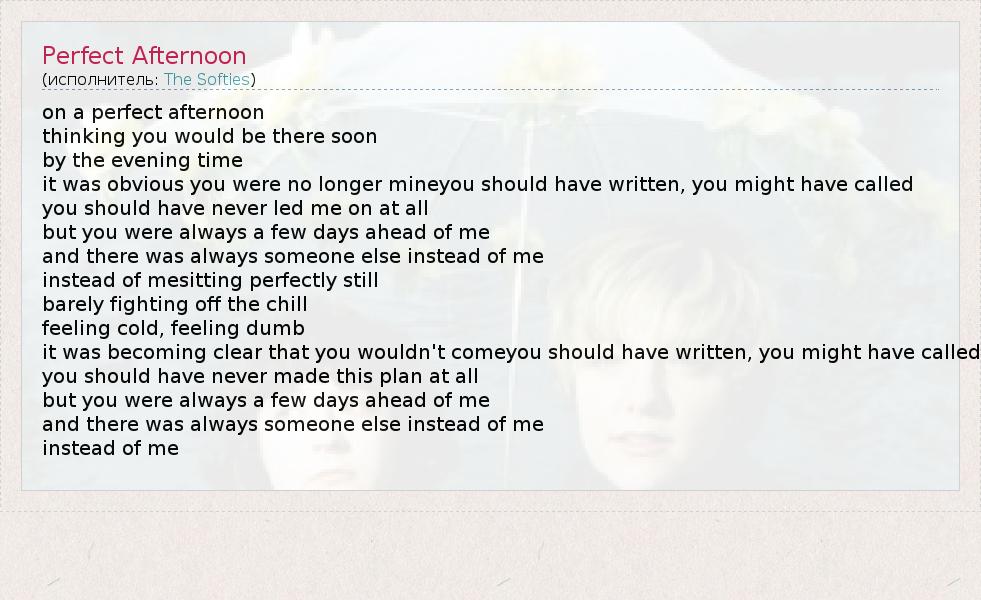 А как ты думаешь, о чем песня "Perfect Afternoon" ?