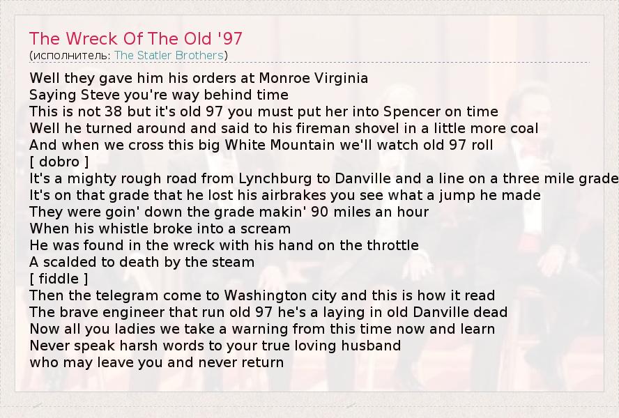 А как ты думаешь, о чем песня "The Wreck Of The Old '97" ?
