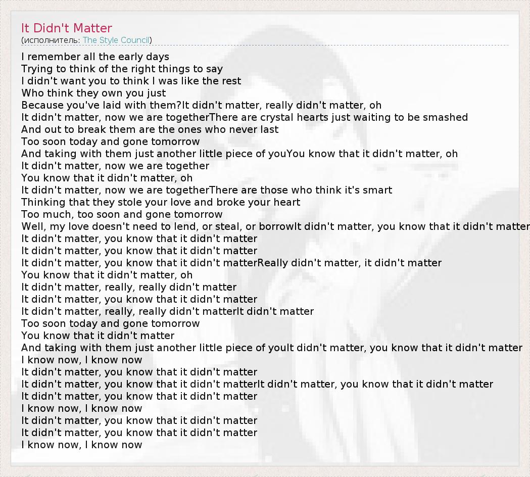 А как ты думаешь, о чем песня "It Didn't Matter" ?