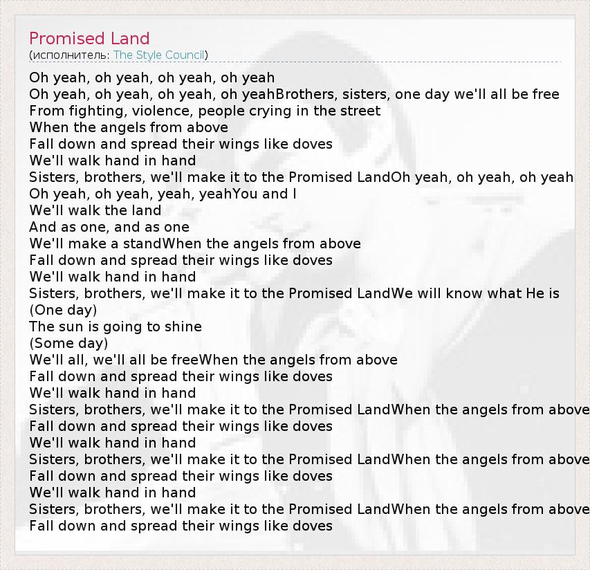Sisters, brothers, we'll make it to the Promised LandOh yeah, oh yeah, oh yeah