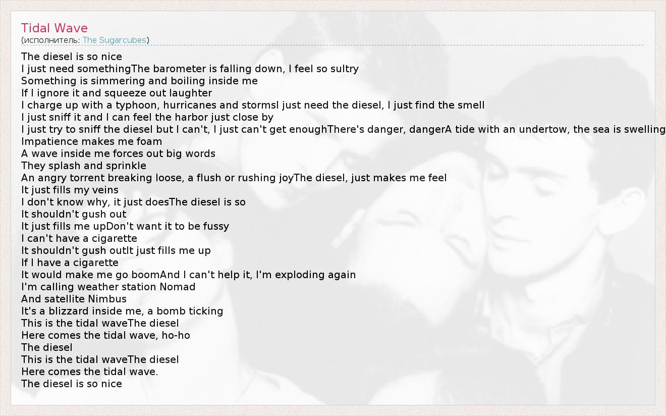 А как ты думаешь, о чем песня "Tidal Wave" ?