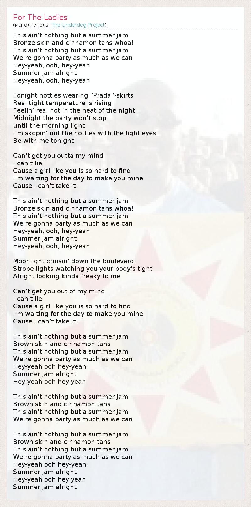 А как ты думаешь, о чем песня "For The Ladies" ?