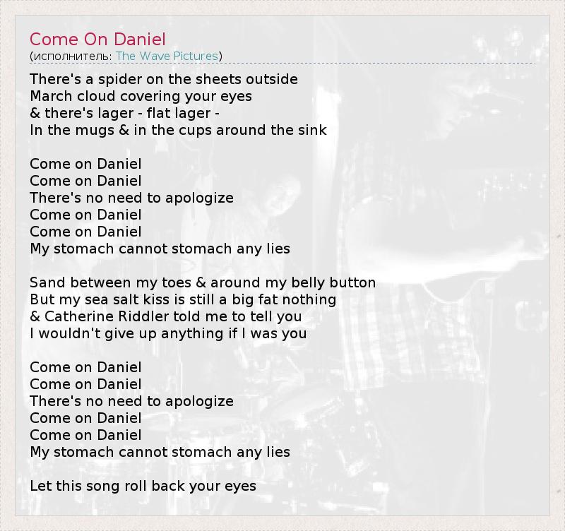 А как ты думаешь, о чем песня "Come On Daniel" ?