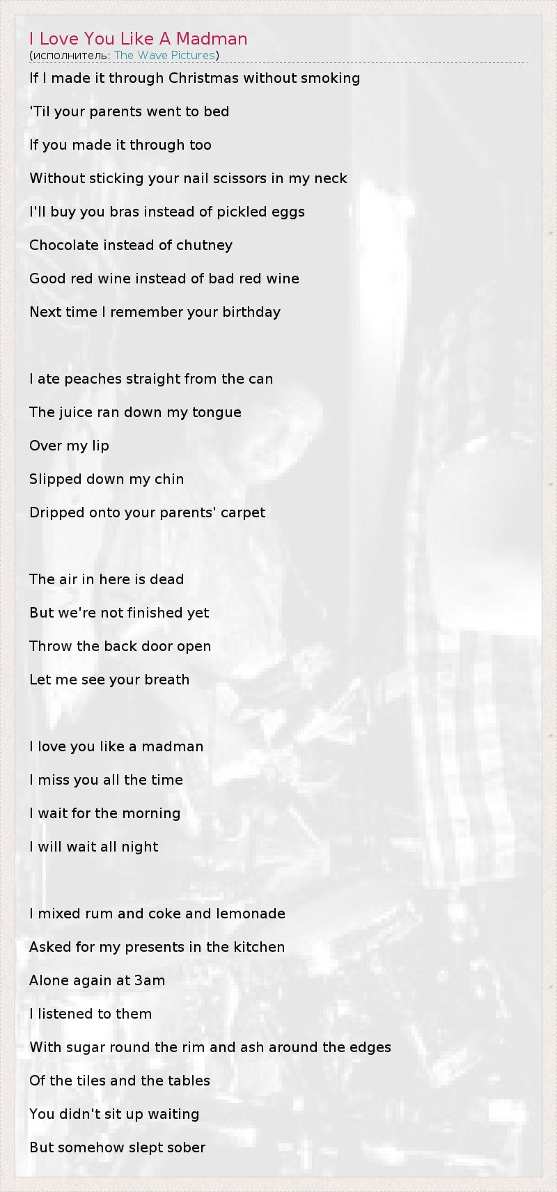 А как ты думаешь, о чем песня "I Love You Like A Madman" ?