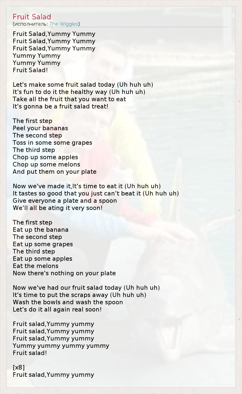 А как ты думаешь, о чем песня "Fruit Salad" ?