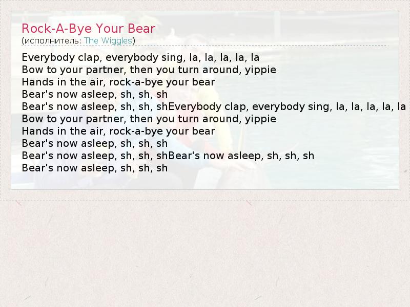 А как ты думаешь, о чем песня "Rock-A-Bye Your Bear" ?