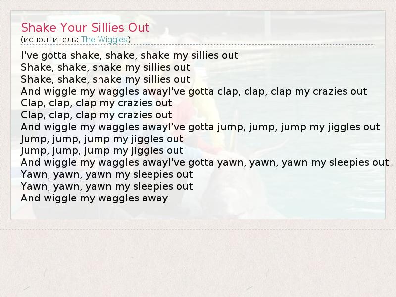 А как ты думаешь, о чем песня "Shake Your Sillies Out" ?