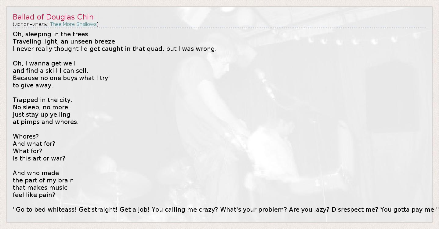 А как ты думаешь, о чем песня "Ballad of Douglas Chin" ?
