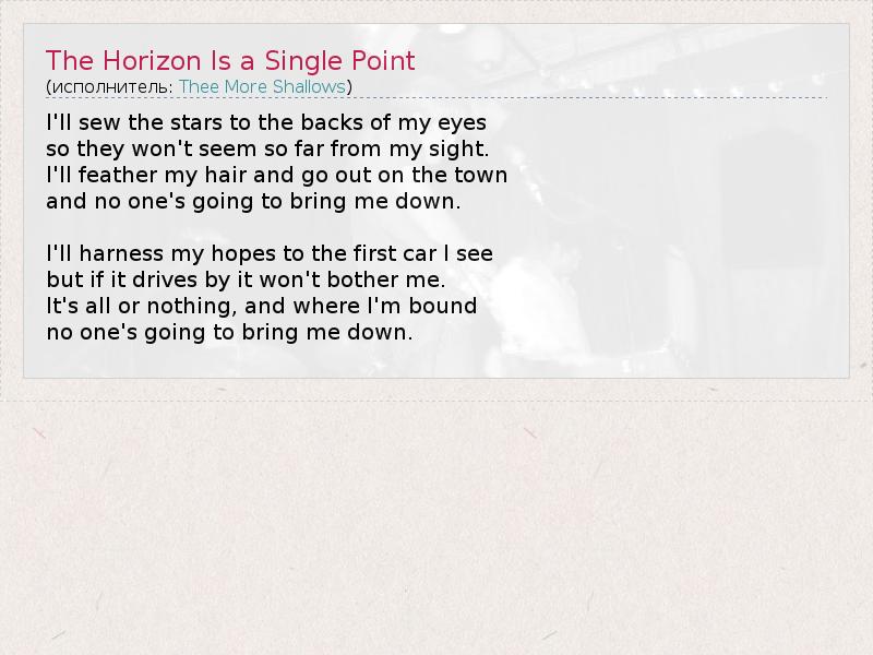 А как ты думаешь, о чем песня "The Horizon Is a Single Point" ?