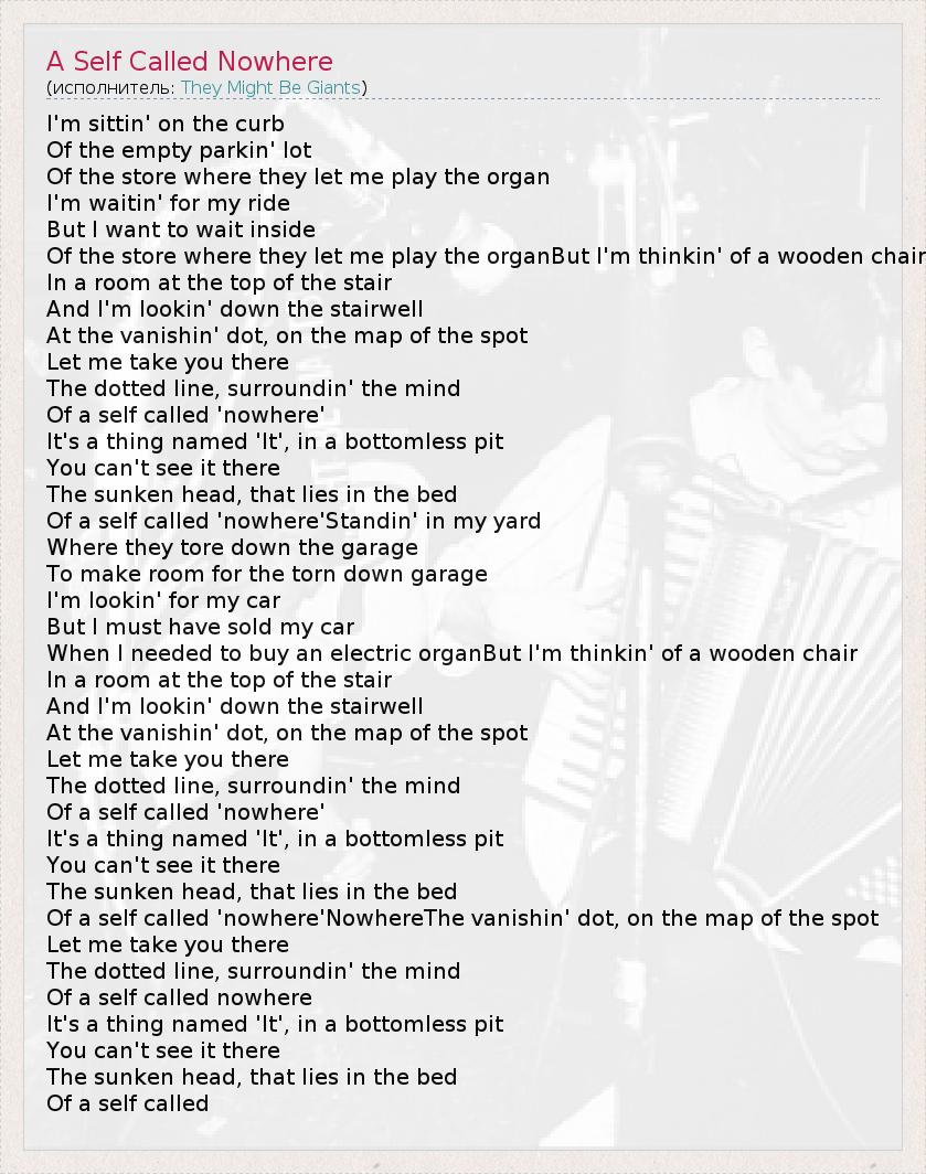 А как ты думаешь, о чем песня "A Self Called Nowhere" ?