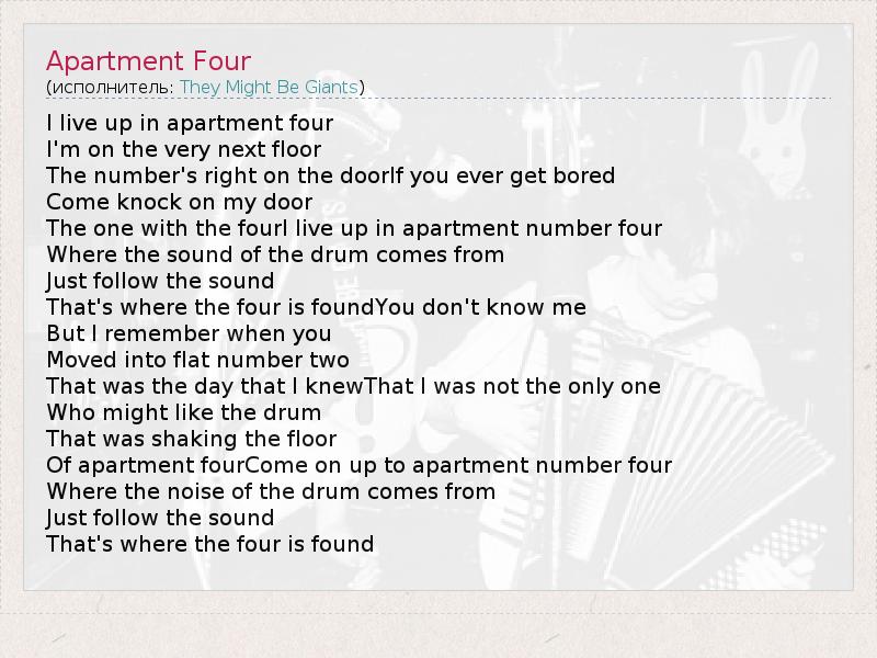 А как ты думаешь, о чем песня "Apartment Four" ?