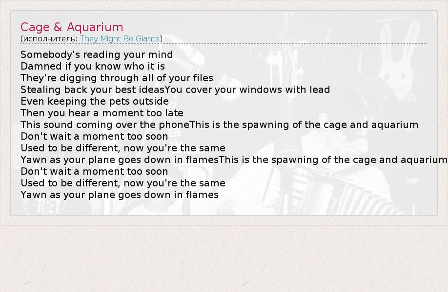 А как ты думаешь, о чем песня "Cage & Aquarium" ?