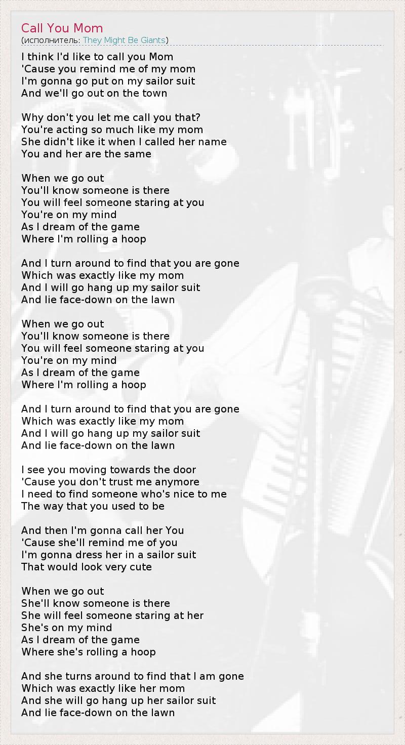 А как ты думаешь, о чем песня "Call You Mom" ?
