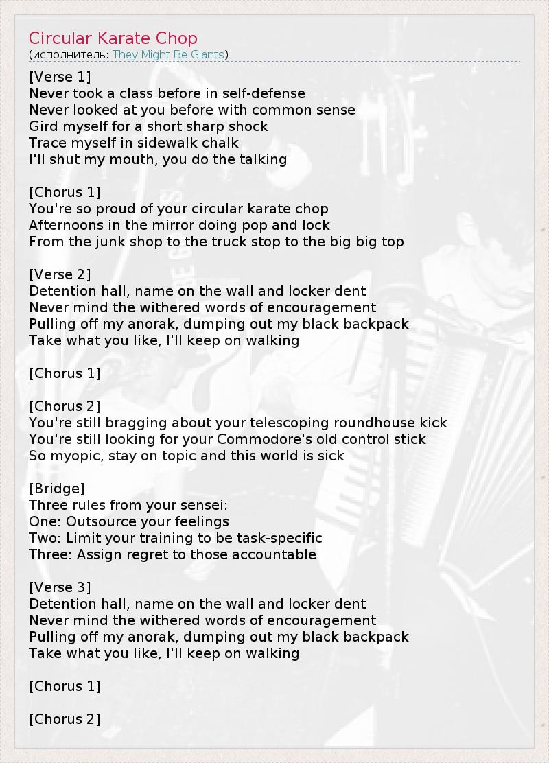 А как ты думаешь, о чем песня "Circular Karate Chop" ?