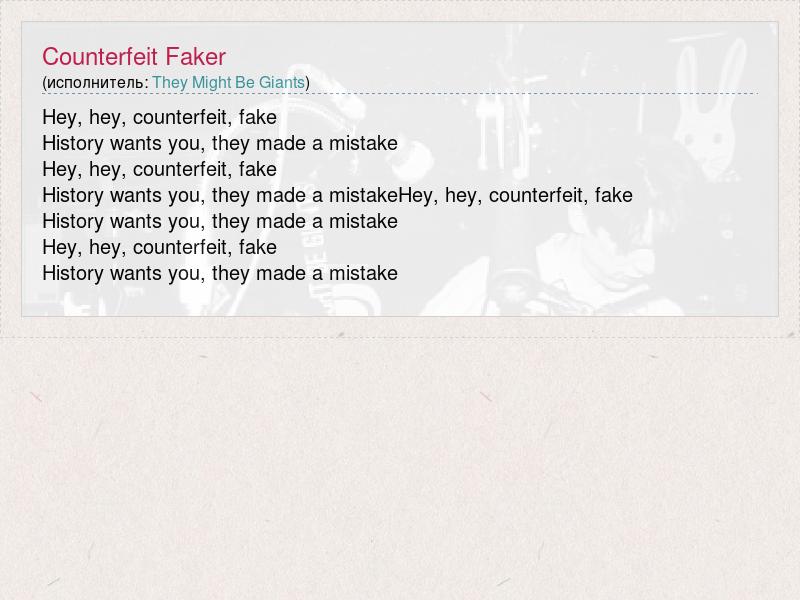 History wants you, they made a mistakeHey, hey, counterfeit, fake