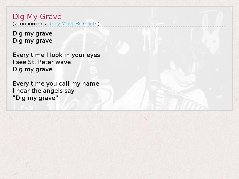 А как ты думаешь, о чем песня "Dig My Grave" ?