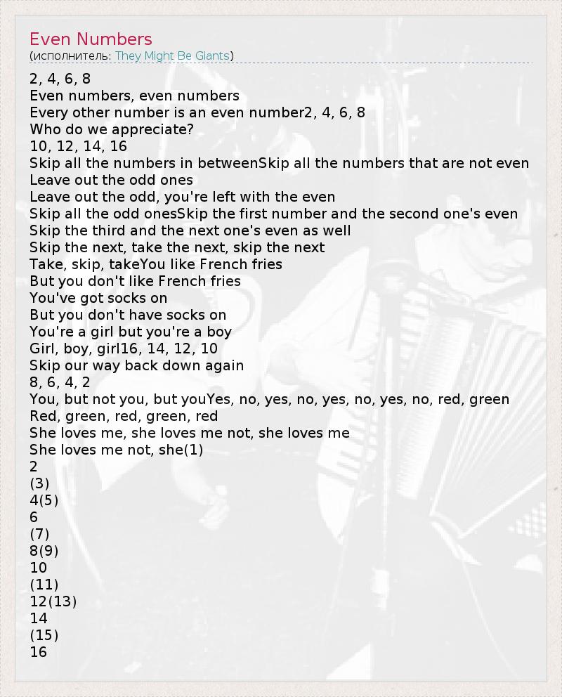 А как ты думаешь, о чем песня "Even Numbers" ?