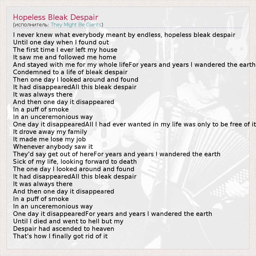 А как ты думаешь, о чем песня "Hopeless Bleak Despair" ?