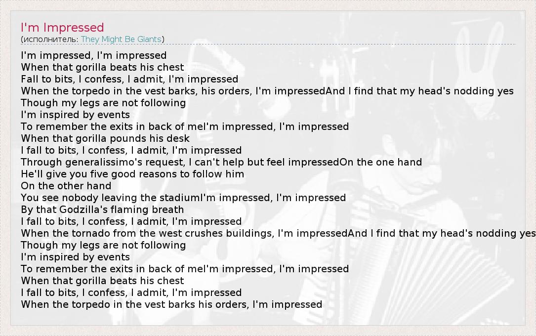 А как ты думаешь, о чем песня "I'm Impressed" ?