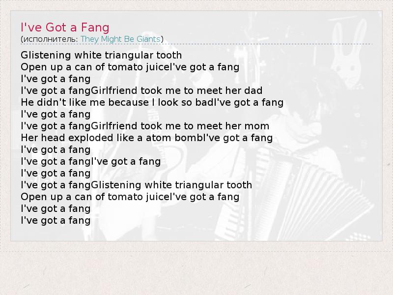 А как ты думаешь, о чем песня "I've Got a Fang" ?