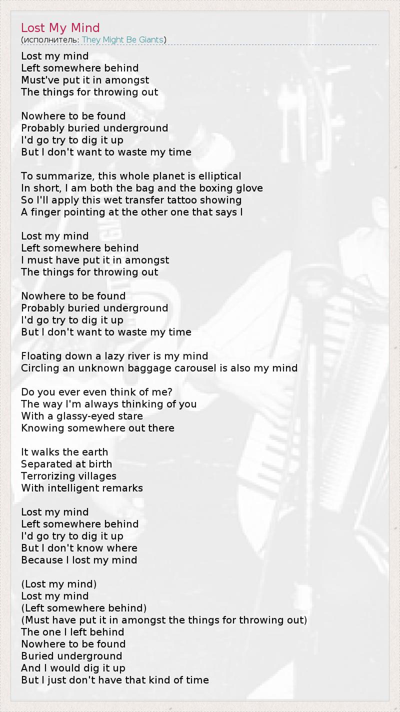 А как ты думаешь, о чем песня "Lost My Mind" ?