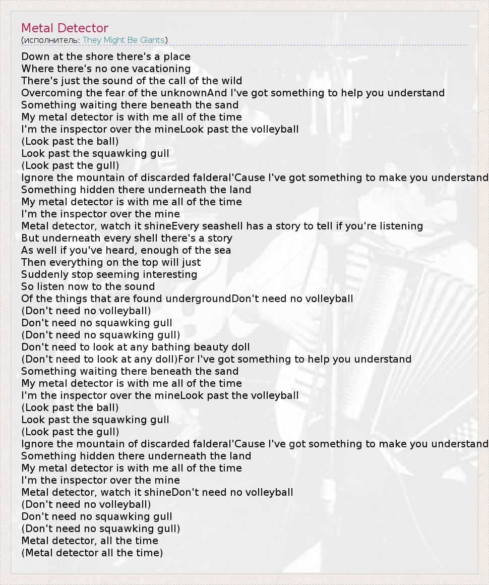 А как ты думаешь, о чем песня "Metal Detector" ?