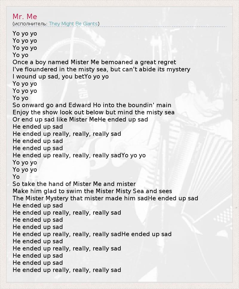 А как ты думаешь, о чем песня "Mr. Me" ?