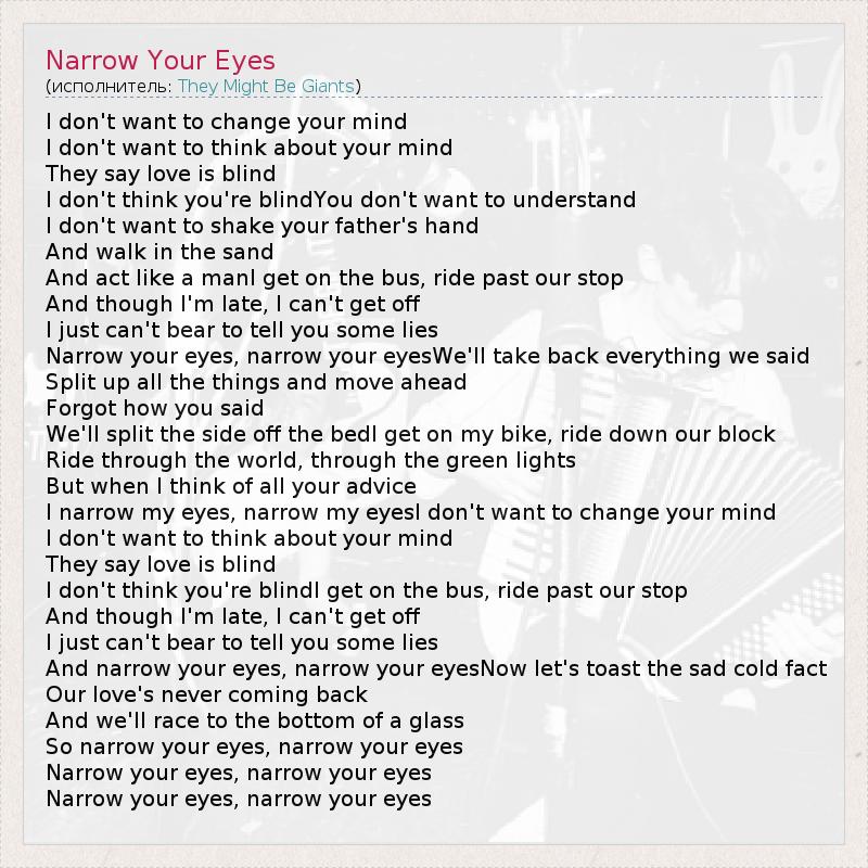 А как ты думаешь, о чем песня "Narrow Your Eyes" ?