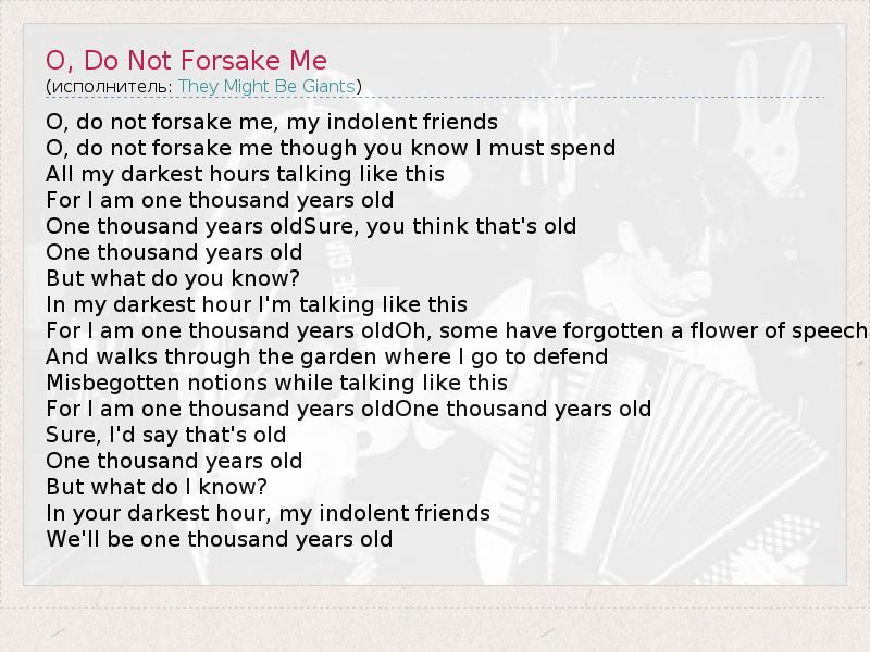 А как ты думаешь, о чем песня "O, Do Not Forsake Me" ?