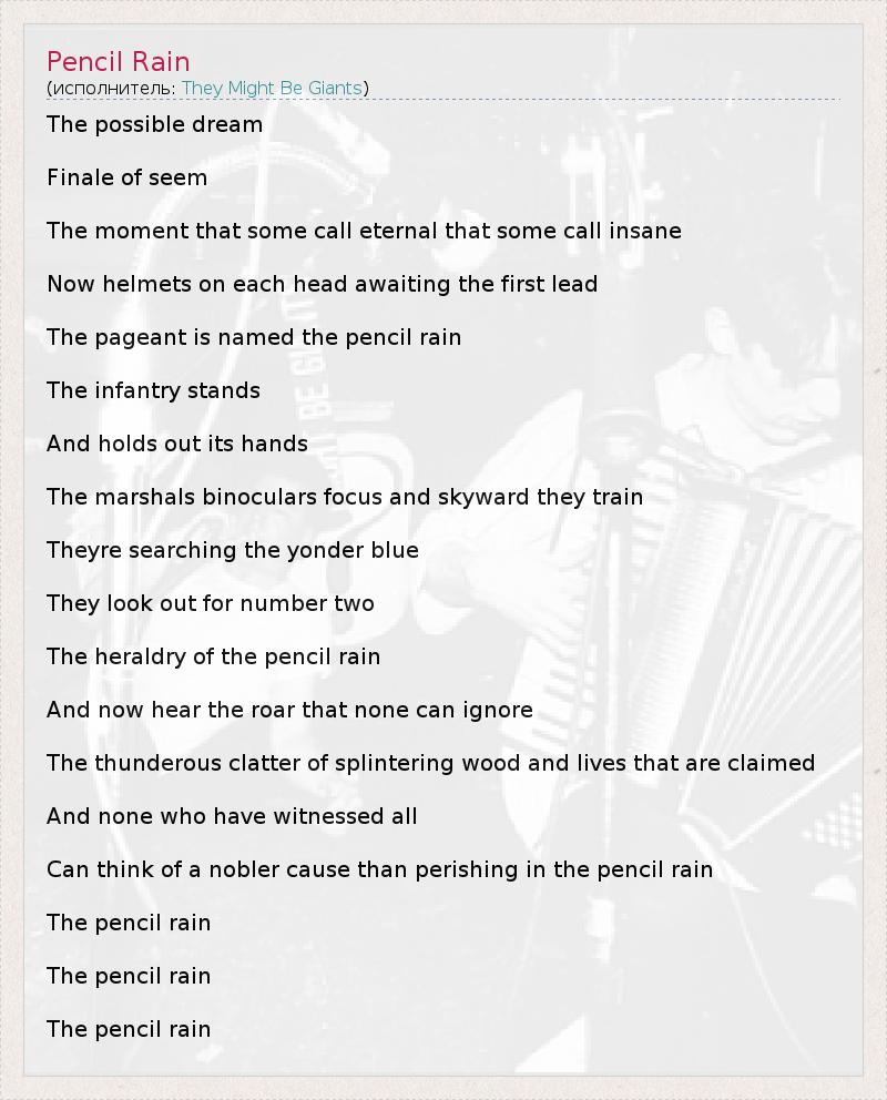 А как ты думаешь, о чем песня "Pencil Rain" ?