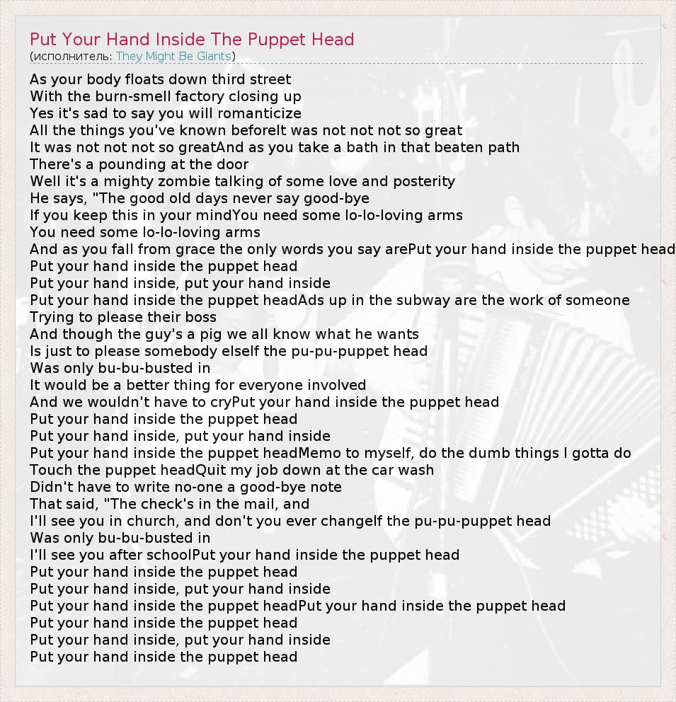 ГлавнаяИсполнителиThey Might Be GiantsPut Your Hand Inside The Puppet Head