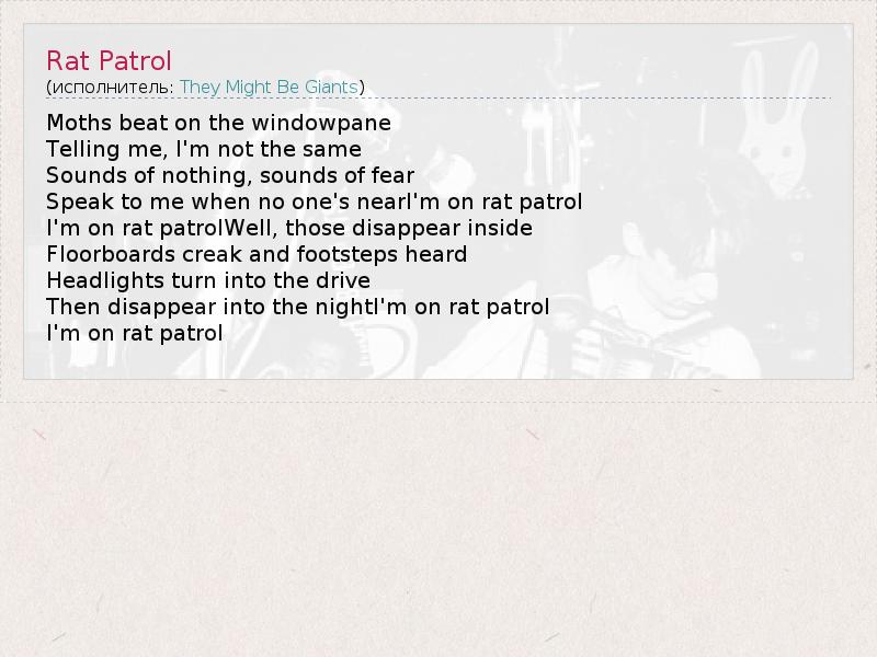 А как ты думаешь, о чем песня "Rat Patrol" ?