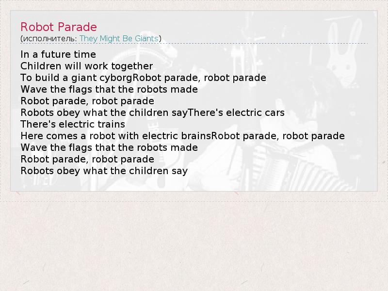 А как ты думаешь, о чем песня "Robot Parade" ?