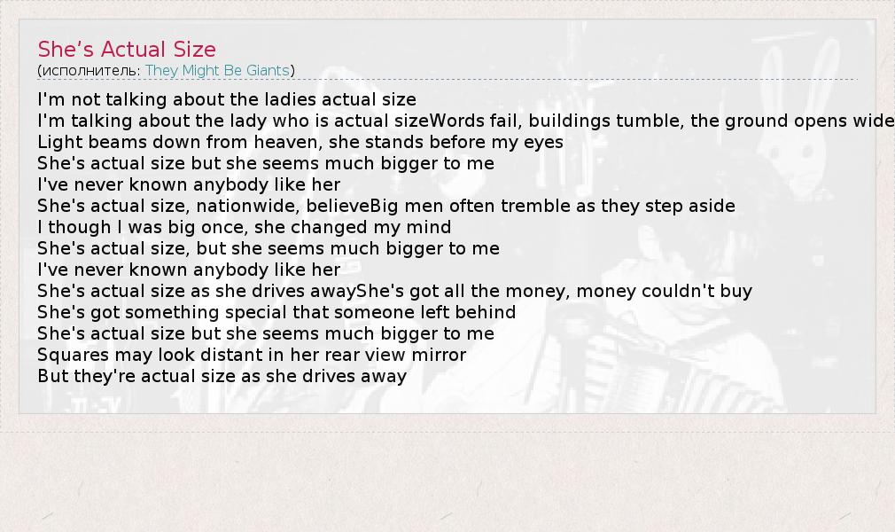 А как ты думаешь, о чем песня "She’s Actual Size" ?