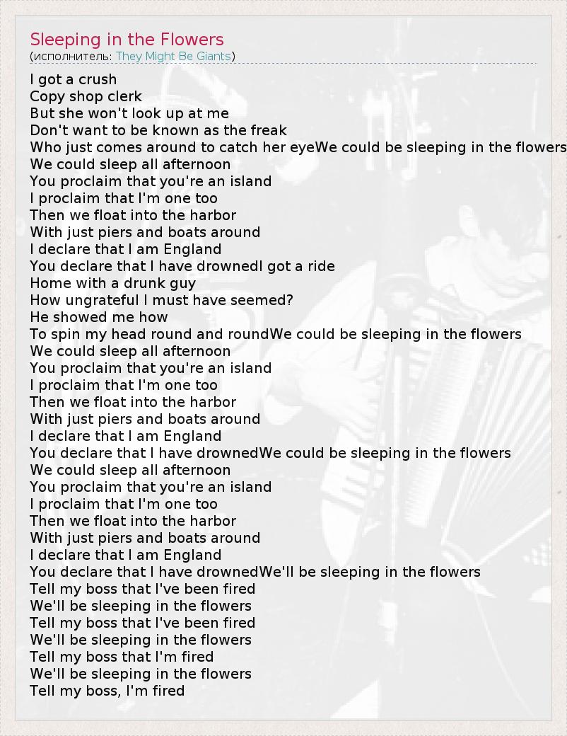 А как ты думаешь, о чем песня "Sleeping in the Flowers" ?