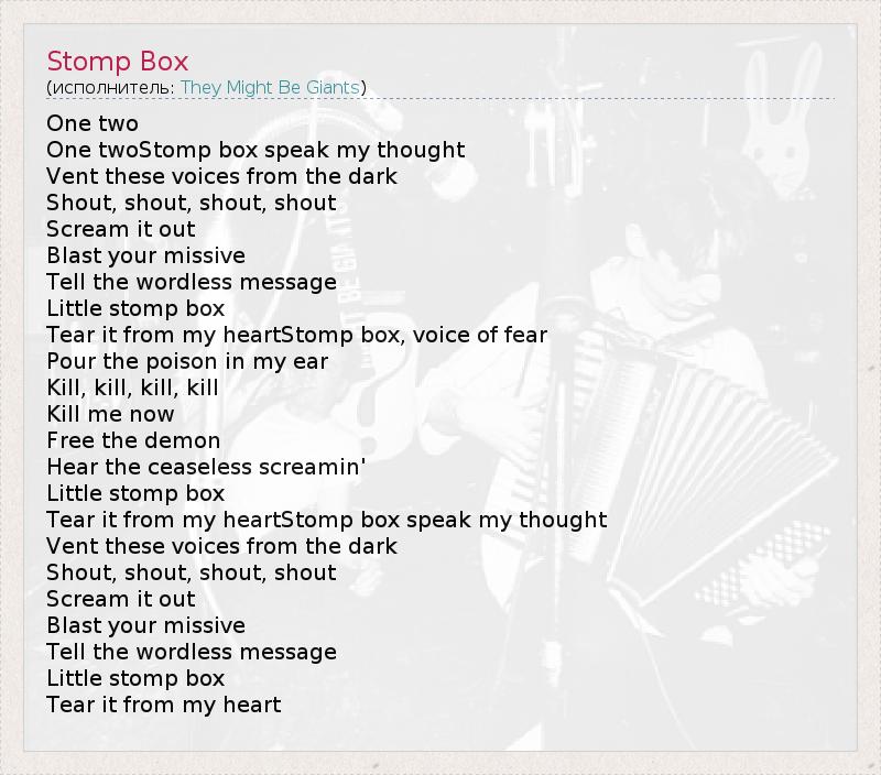 А как ты думаешь, о чем песня "Stomp Box" ?