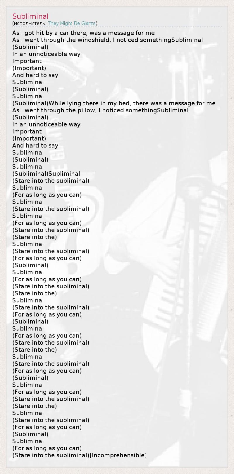 Это интересно:They Might Be Giants (обычно сокращают TMBG) - американская альтернативная рок-группа, которая началась как дуэт Джона Флэнсбёрга и Джона Линнелла, а в настоящее время также включает Марти Беллера, Дэна Миллера и Дэнни Вайнкауфа. Сформированная в 1982 году, группа прежде всего известна своим нетрадиционным и экспериментальным стилем альтернативной музыки. Группа получила известность на чартах modern... продолжение