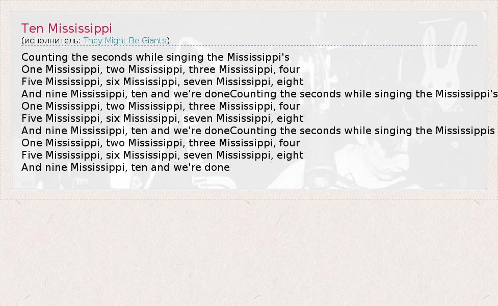 А как ты думаешь, о чем песня "Ten Mississippi" ?