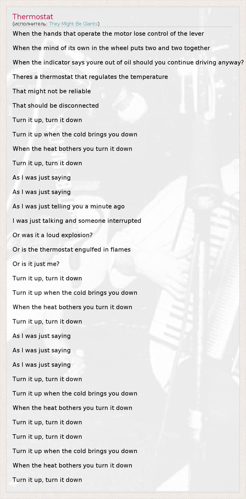 Это интересно:They Might Be Giants (обычно сокращают TMBG) - американская альтернативная рок-группа, которая началась как дуэт Джона Флэнсбёрга и Джона Линнелла, а в настоящее время также включает Марти Беллера, Дэна Миллера и Дэнни Вайнкауфа. Сформированная в 1982 году, группа прежде всего известна своим нетрадиционным и экспериментальным стилем альтернативной музыки. Группа получила известность на чартах modern... продолжение