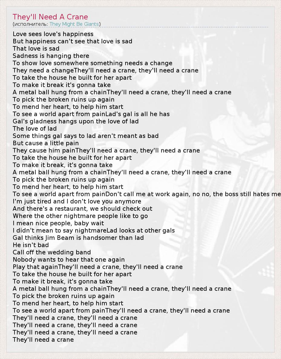 А как ты думаешь, о чем песня "They'll Need A Crane" ?