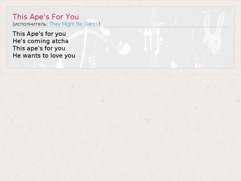 А как ты думаешь, о чем песня "This Ape’s For You" ?