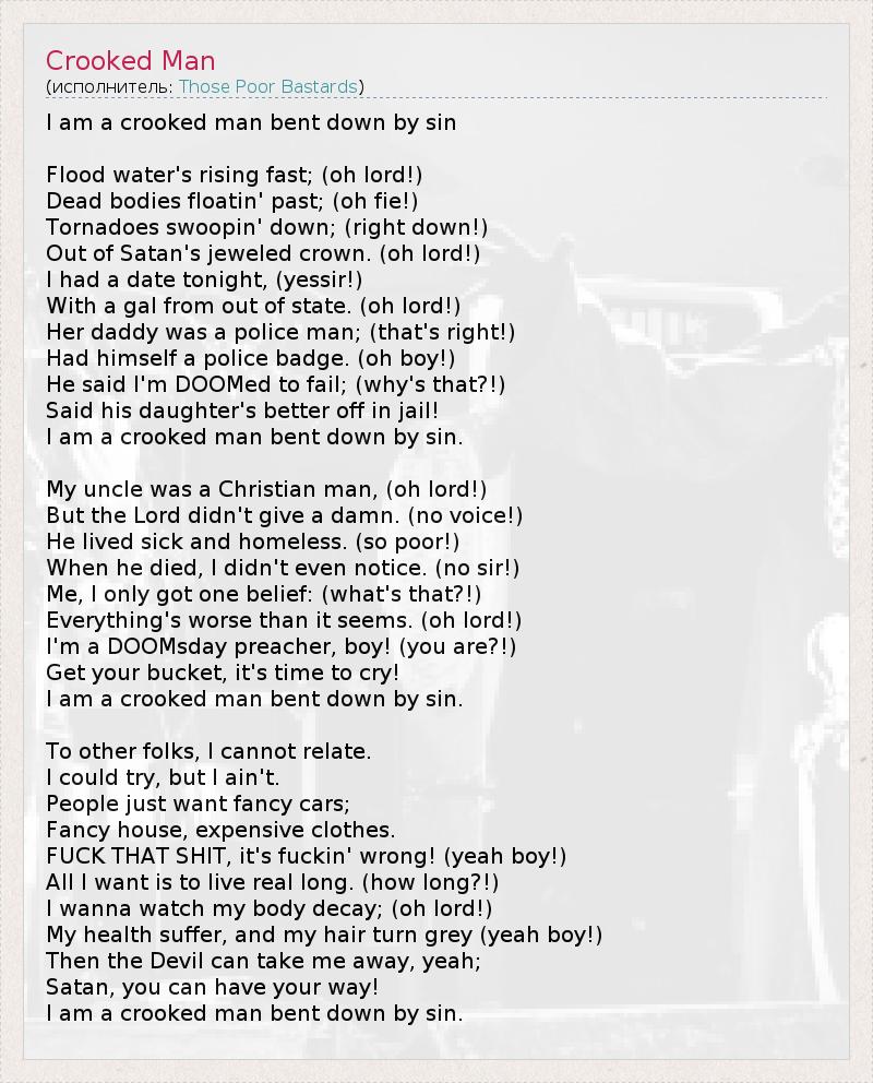 А как ты думаешь, о чем песня "Crooked Man" ?