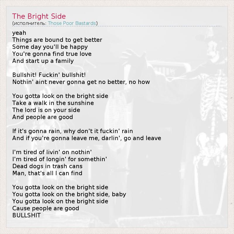 А как ты думаешь, о чем песня "The Bright Side" ?