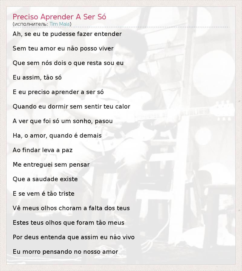 А как ты думаешь, о чем песня "Preciso Aprender A Ser Só" ?